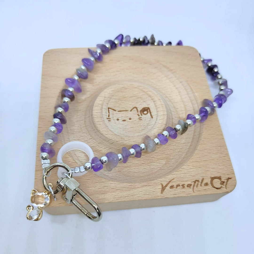 白瑪瑙貓掌紫玉晶頸鏈