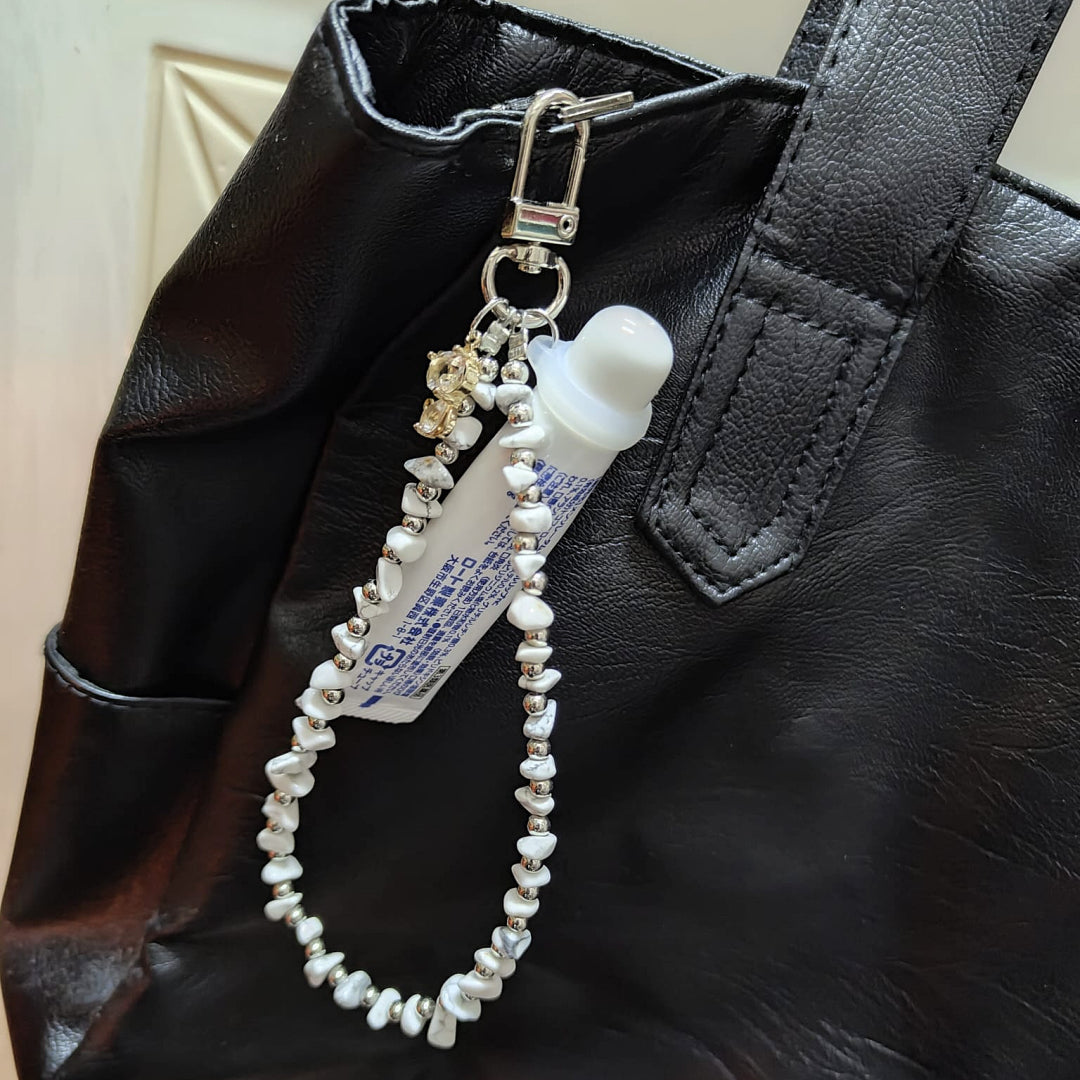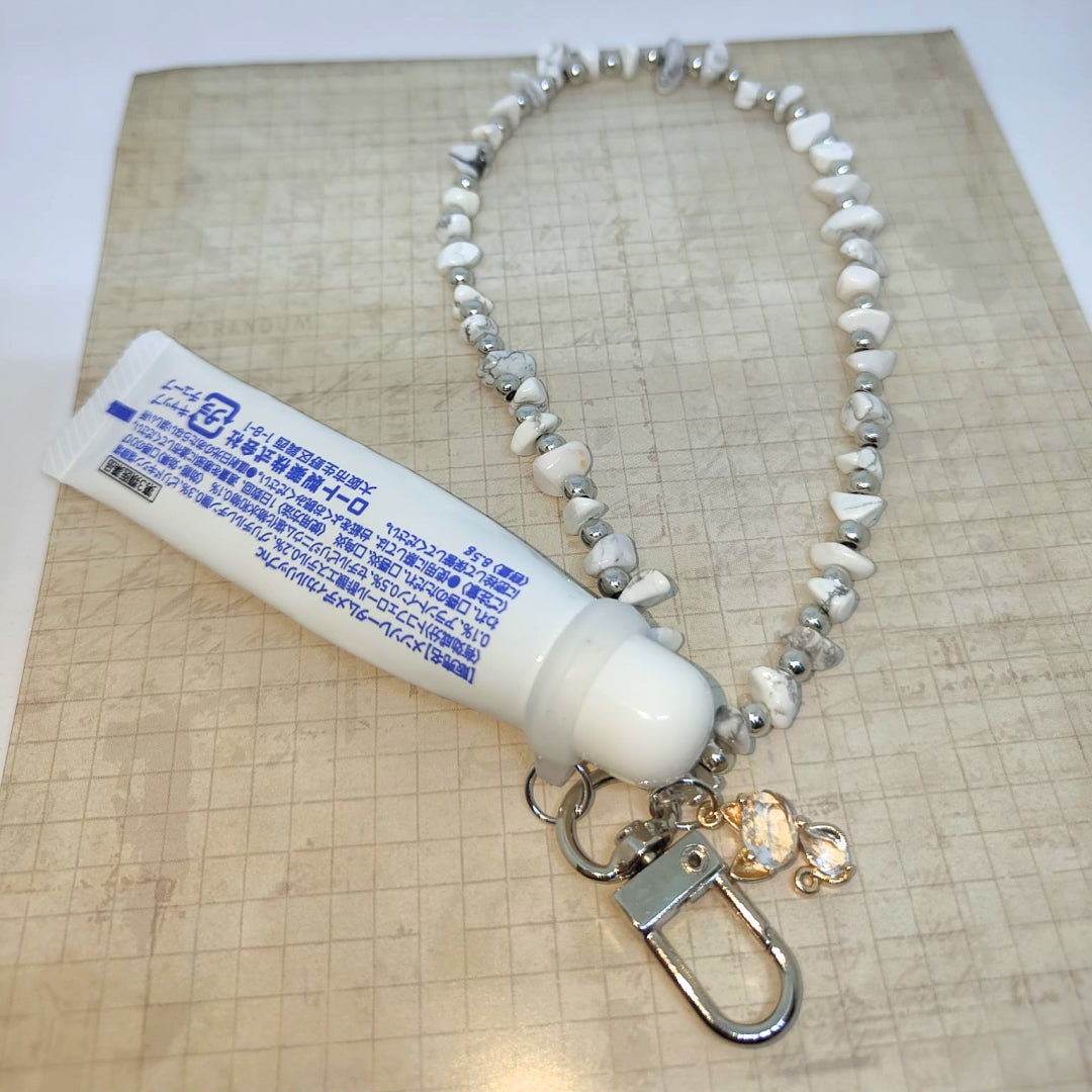 材料:天然紫水晶粒/白松石、金屬匙扣及硅膠唇膏環